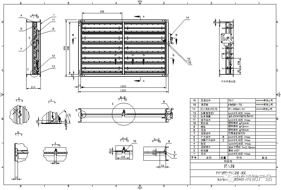 防火阀门产品图纸的其他要求:
